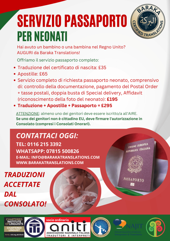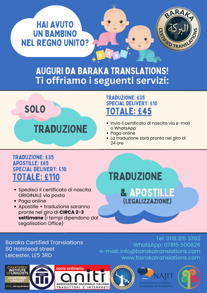 Da Baraka Translations & Legal Services, offriamo supporto completo per tutte le pratiche legate alla registrazione di nascita: